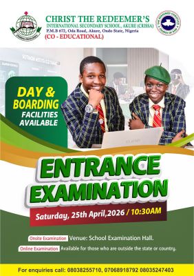 Christ the Redeemer’s International Secondary School took off as fully residential for all students with pioneer students of 14 boys and 5 girls in September 1998. The vision for the School is that of the General Overseer of the Redeemed Christian Church of God, Pastor E. A. Adeboye who enabled CRSM to oversee school by the then State Pastor of Ondo State (now R.C.C.G. Ondo Provinces I, II, III, IV, V & Ekiti I & II) Pastor Olusola Adeyeye. As a mission school, the school has continued to impact her students positively on matters relating to hav...